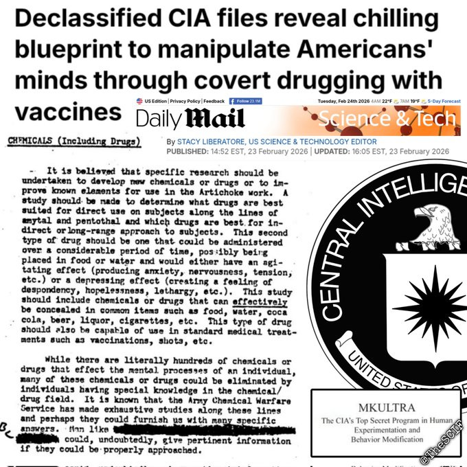 Project Artichoke explored the use of vaccines to deliver substances that induce anxiety, depression, lethargy and hopelessness. Project Artichoke.” A chilling blueprint for mind control through covert drugging. What if it’s still happening today?