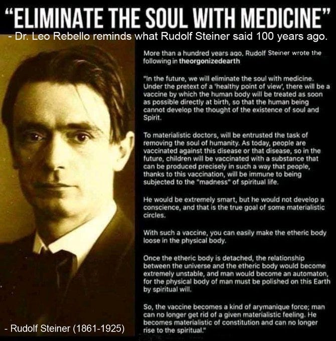 Rudolf Steiner is credited to have said this: “In the future, we will eliminate the soul with medicine”. Of how things are headed now with AI, Gene Editing, we seem to be on the path to eliminate the soul with the objective of controlling the human species.